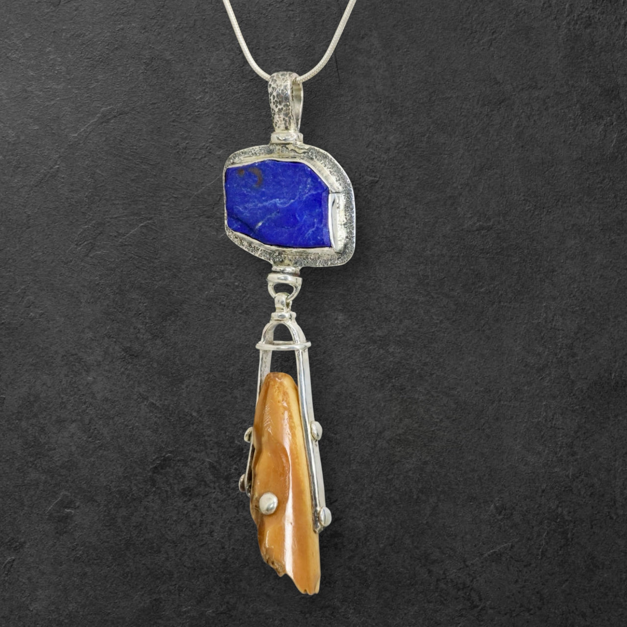 Fossil Walrus Ivory, Lapis & .925 Sterling Silver