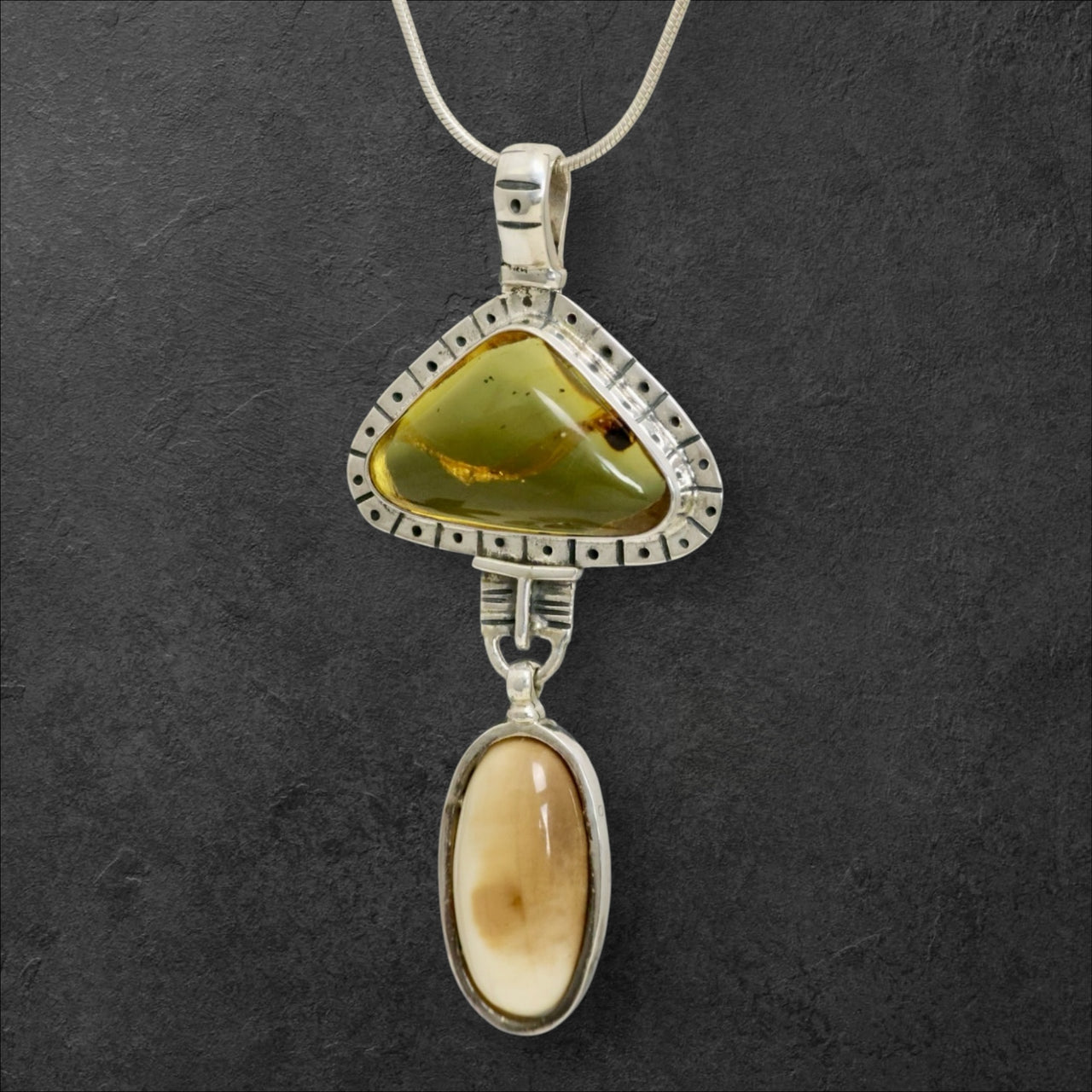 Fossil Mammoth Ivory, Amber & .925 Sterling Silver