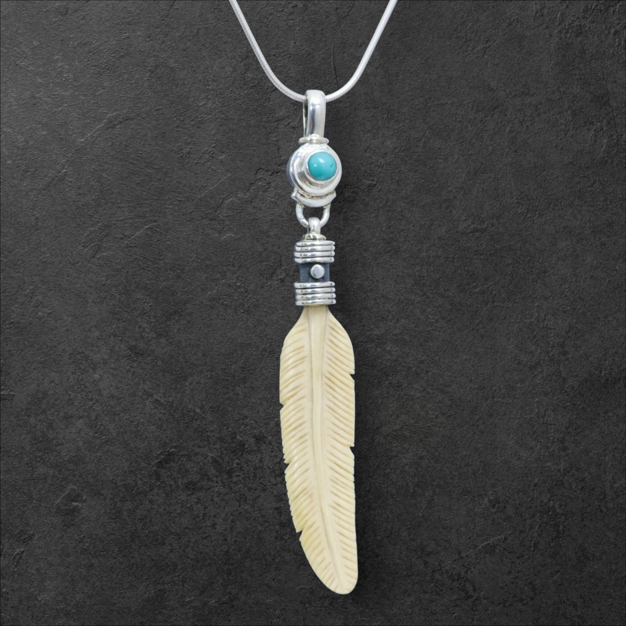 Fossil Walrus Ivory, Turquoise & .925 Sterling Silver