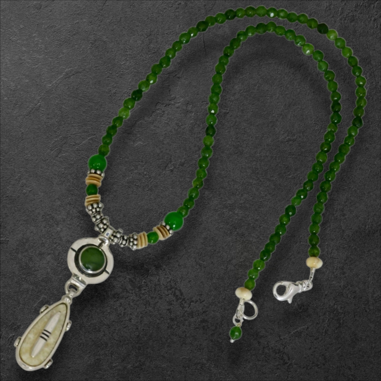 Fossil Walrus Ivory, Jade & .925 Sterling Silver Clasp
