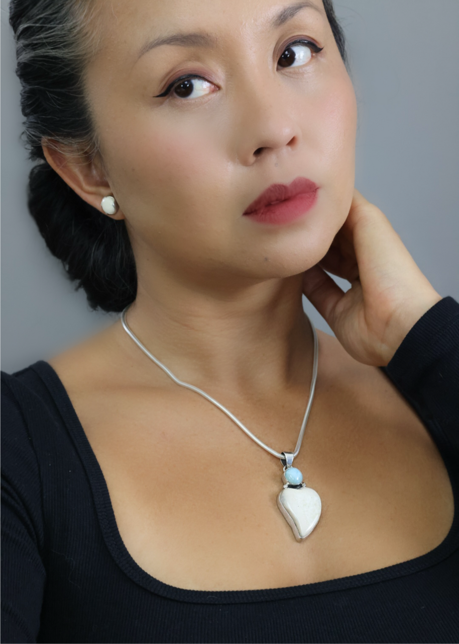 Fossil Walrus Ivory, Larimar & .925 Sterling SilverLength: 1 3/4" x Width: 1" *One of a kind