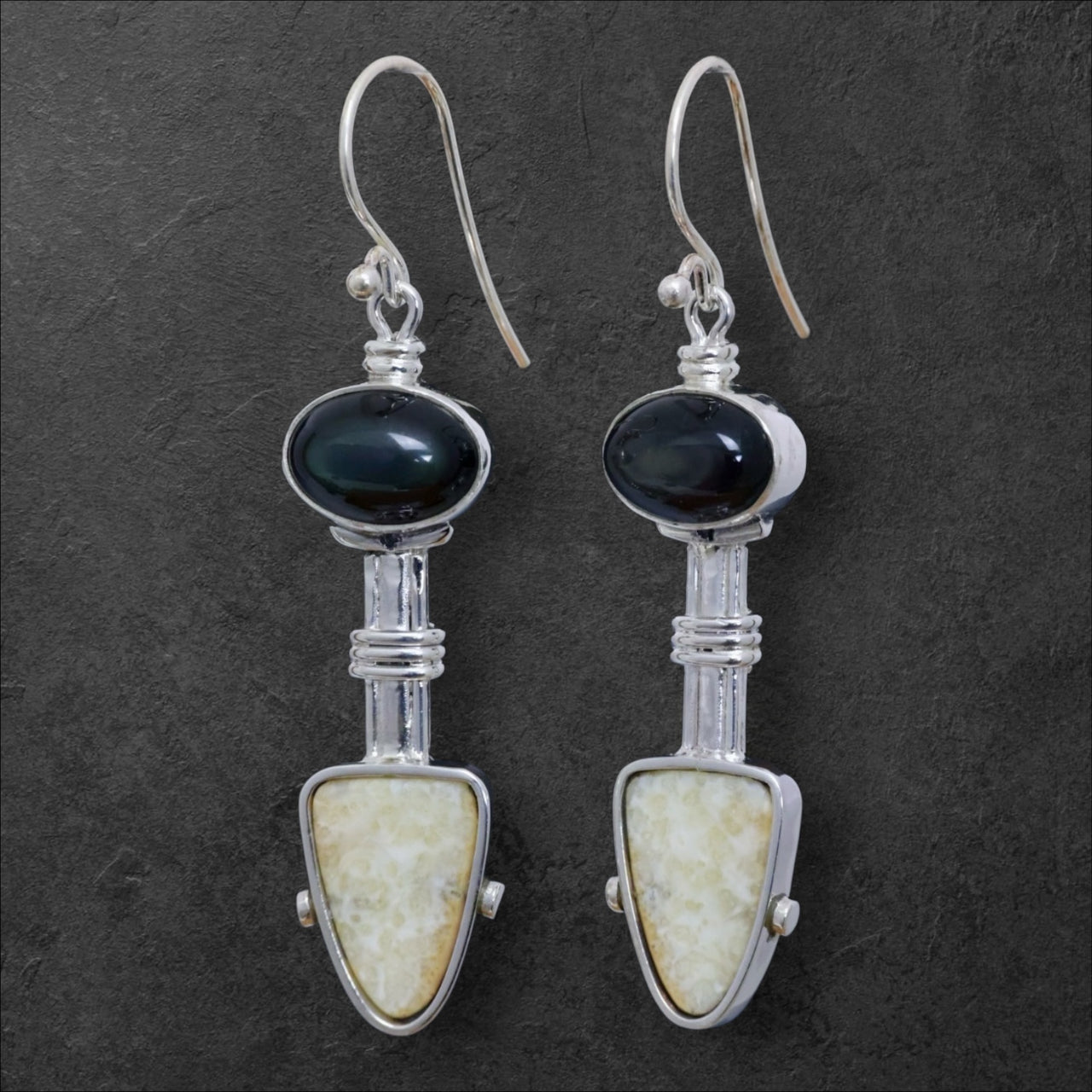Fossil Walrus Ivory, Onyx & .925 Sterling Silver