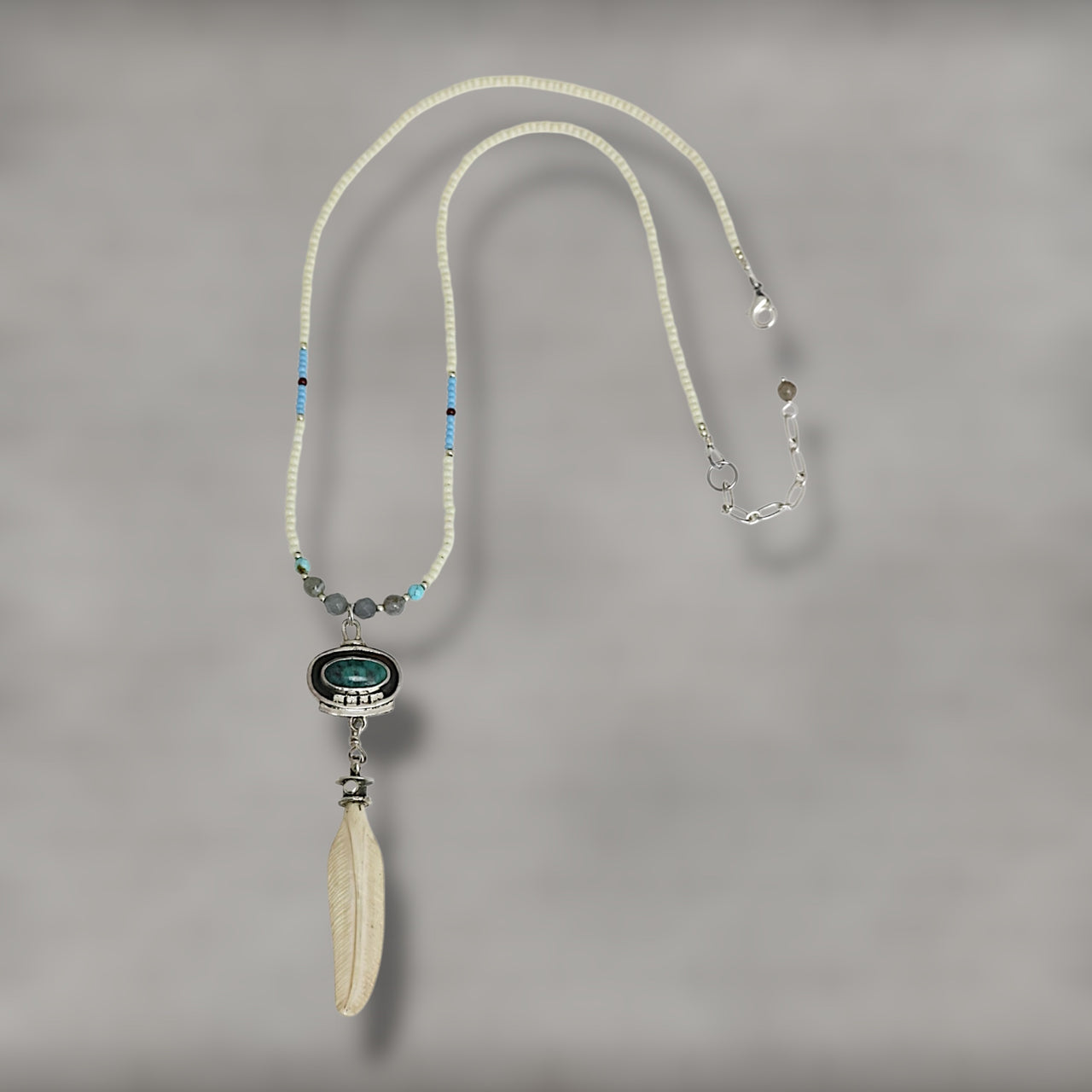 Fossil Walrus Ivory & Turquoise Necklace with .925 Sterling Silver Clasp