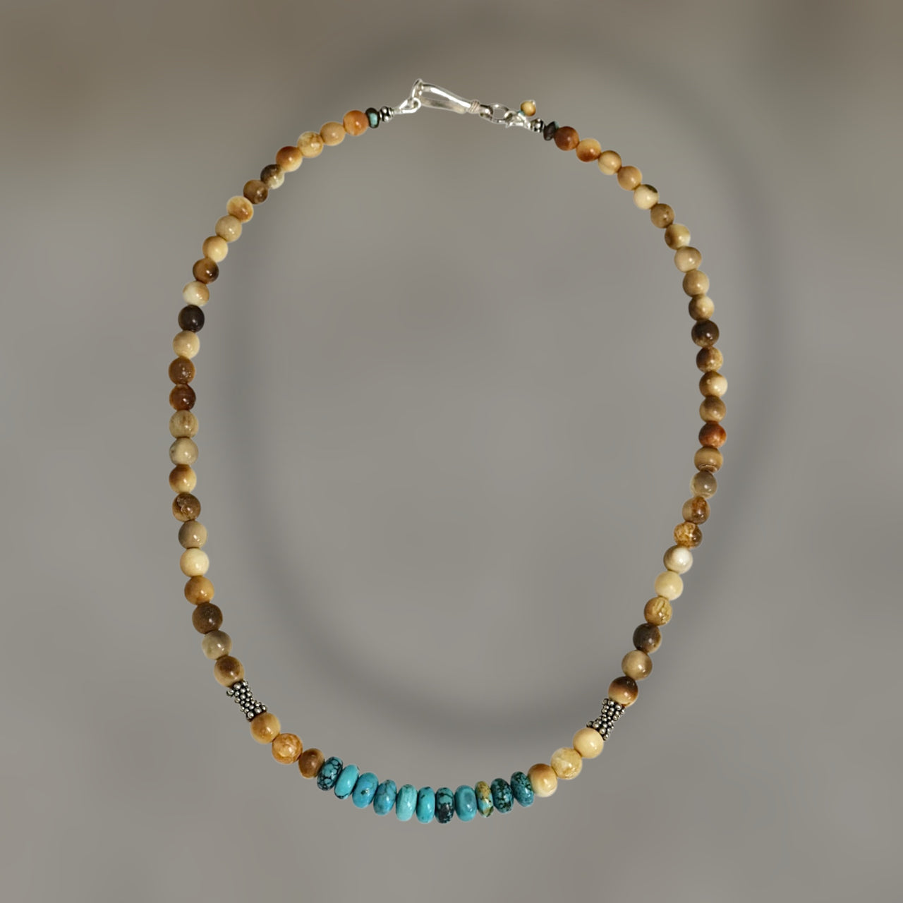 Fossil Walrus Ivory, Turquoise & .925 Sterling SilverSize - 18" LengthIncludes Fossil information cardOne of a kind...