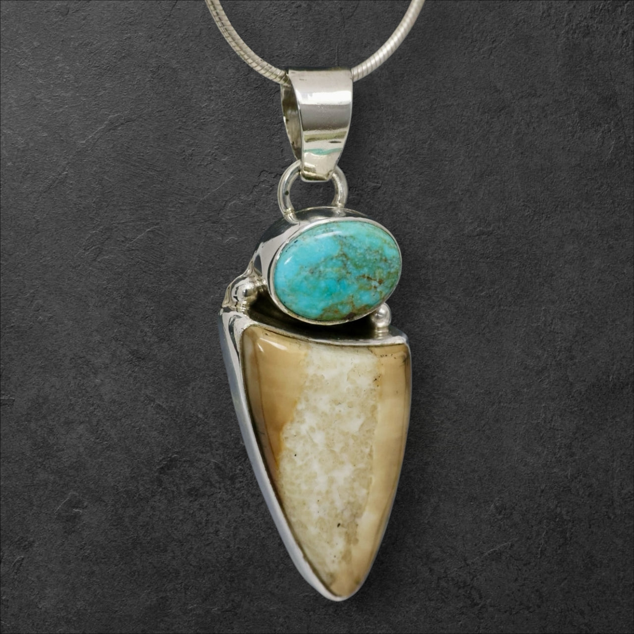 Fossil Walrus Ivory, Turquoise & .925 Sterling Silver
