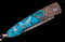 The Lancet 'Kingman' features a beautiful frame in 'Twist' Mokume Gane by Mike Sakmar, with 'Zinc Matrix' turquoise scales. The blade is William Henry's signature 'Wave' damascus with an extra strong core of VG-10; the one-hand button lock and the thumb stud are set with black onyx cabochons. Sleek, elegant, refined, and comfortable in the hand and to the eye, the Lancet defines the essential gentleman’s folder in the modern world. The ‘Kingman’ features some of the exotic materials and hand-forged metals that are the hallmark of William Henry's collections; a timeless heirloom to be proudly worn and used for a lifetime before being handed-down to another generation.