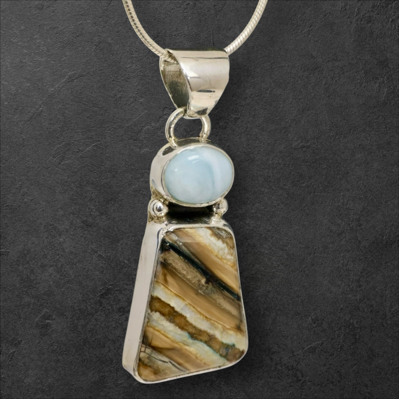 Fossil Mammoth Tooth, Larimar & .925 Sterling Silver