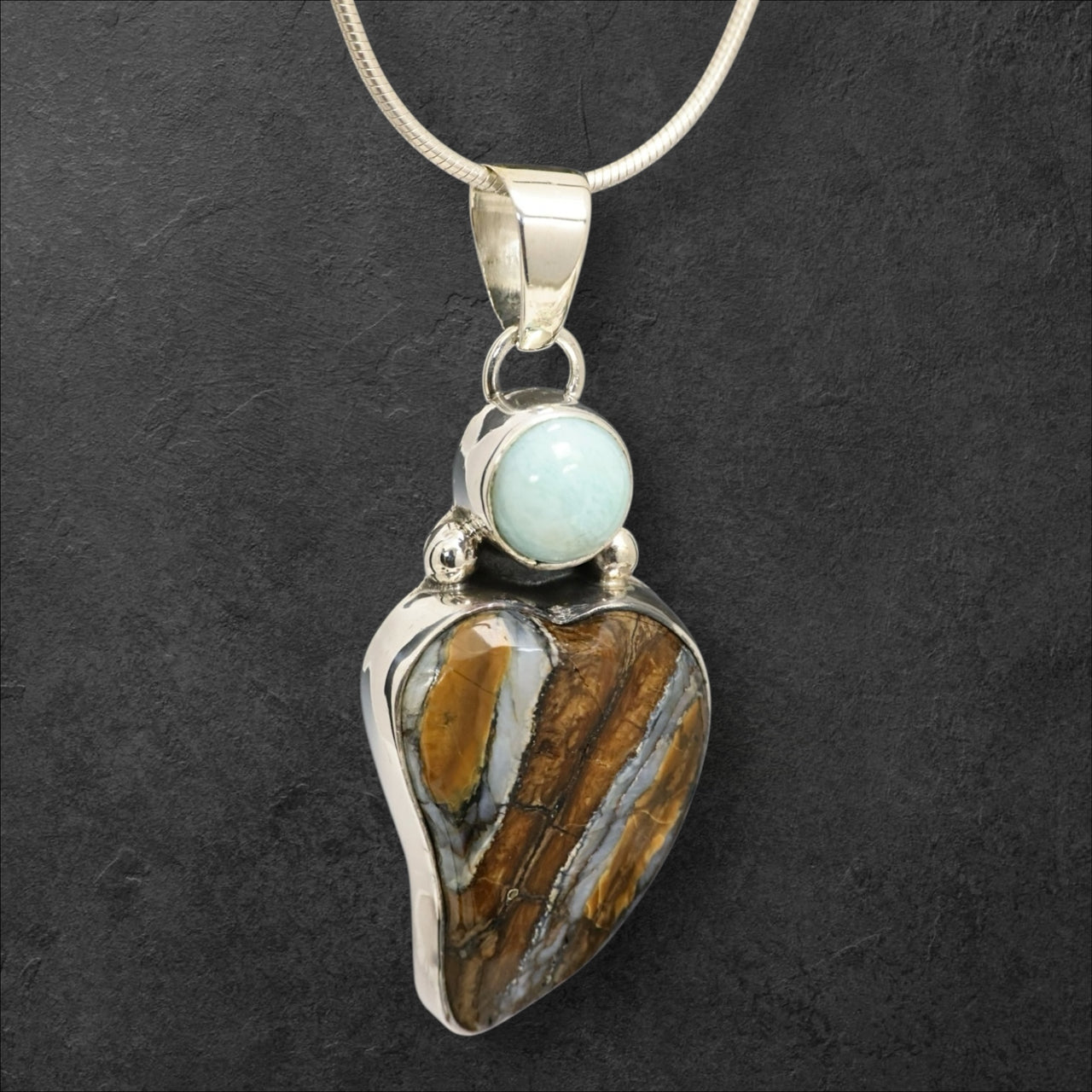 Fossil Mammoth Tooth, Larimar & .925 Sterling Silver